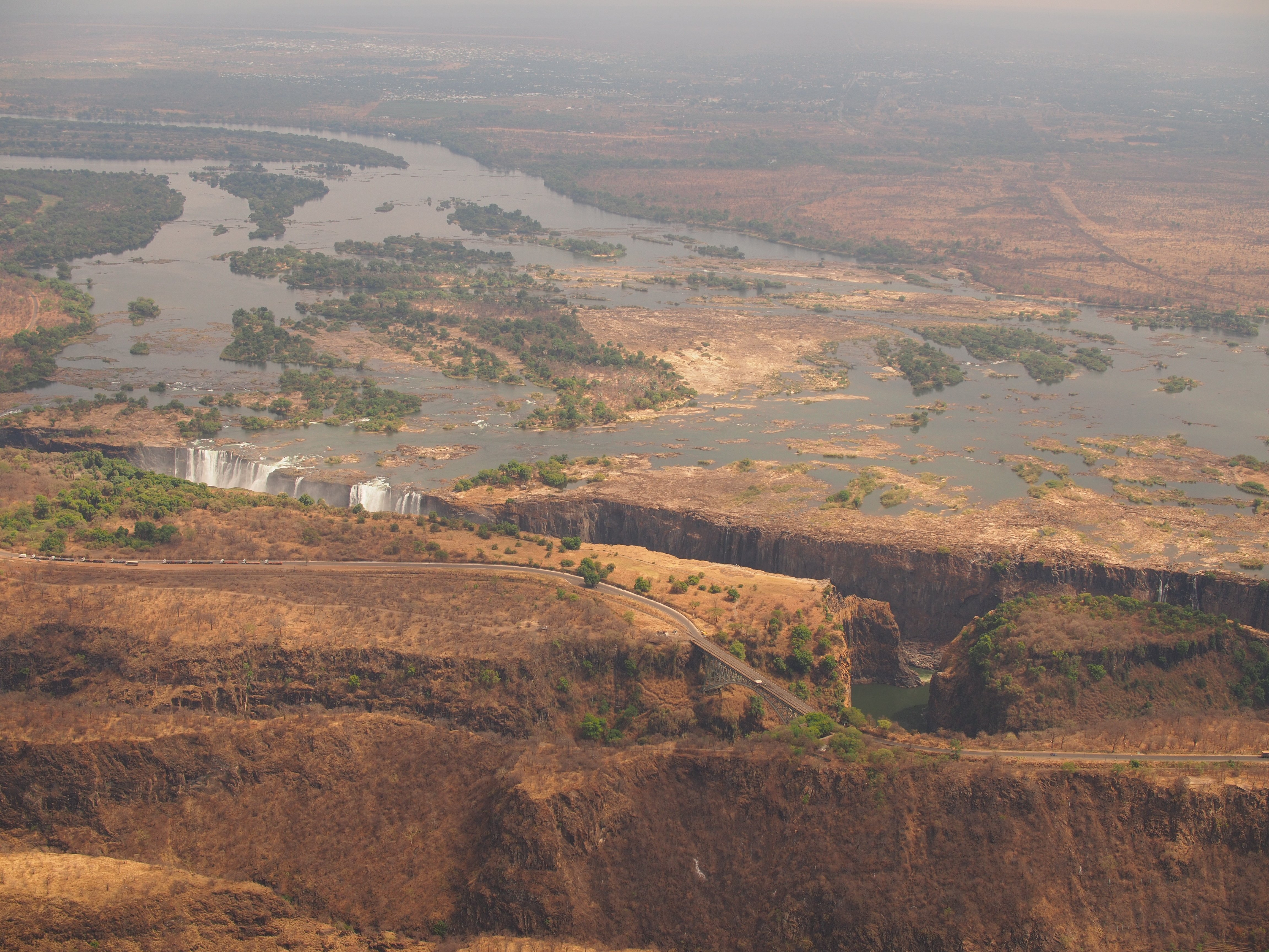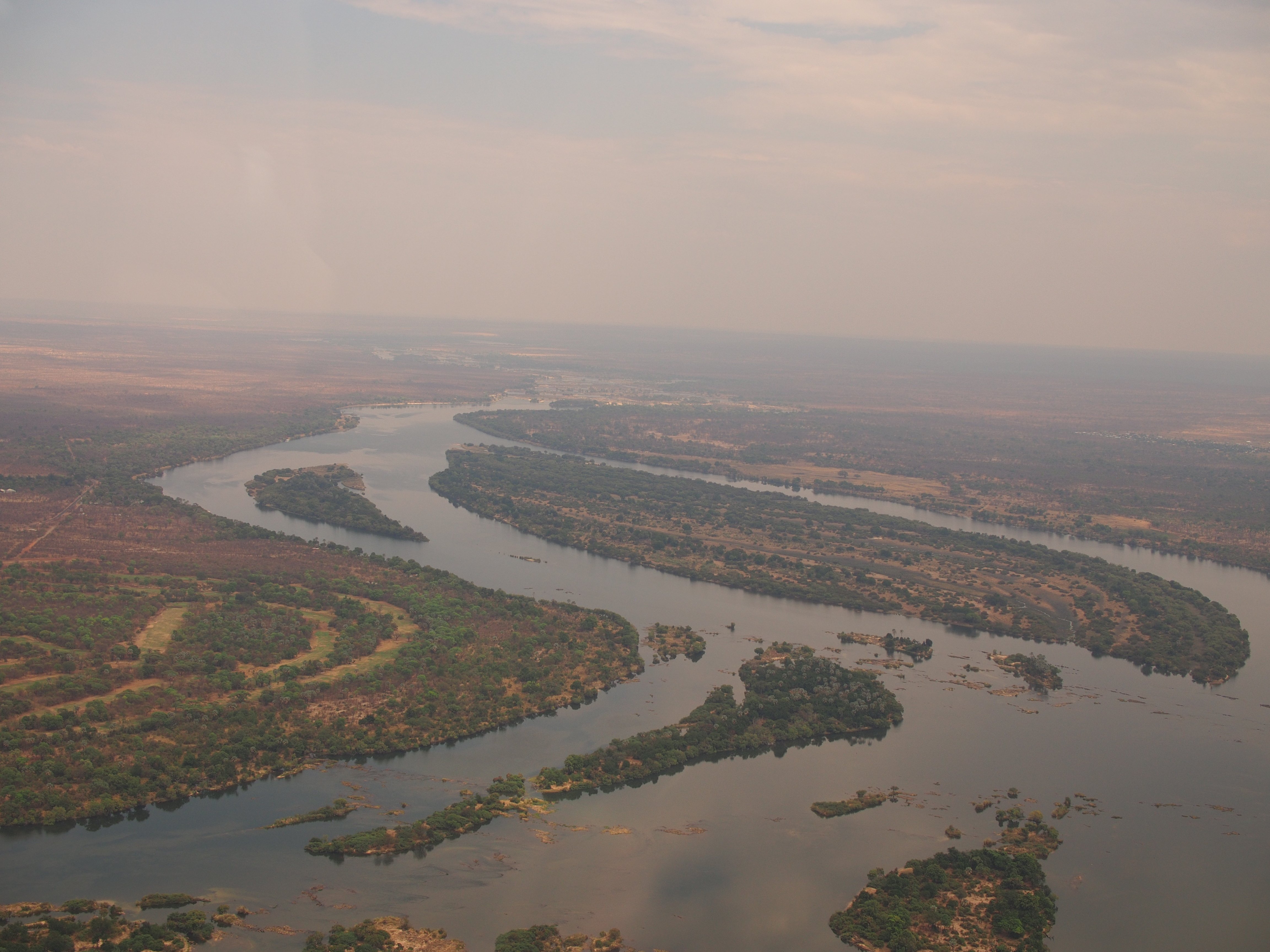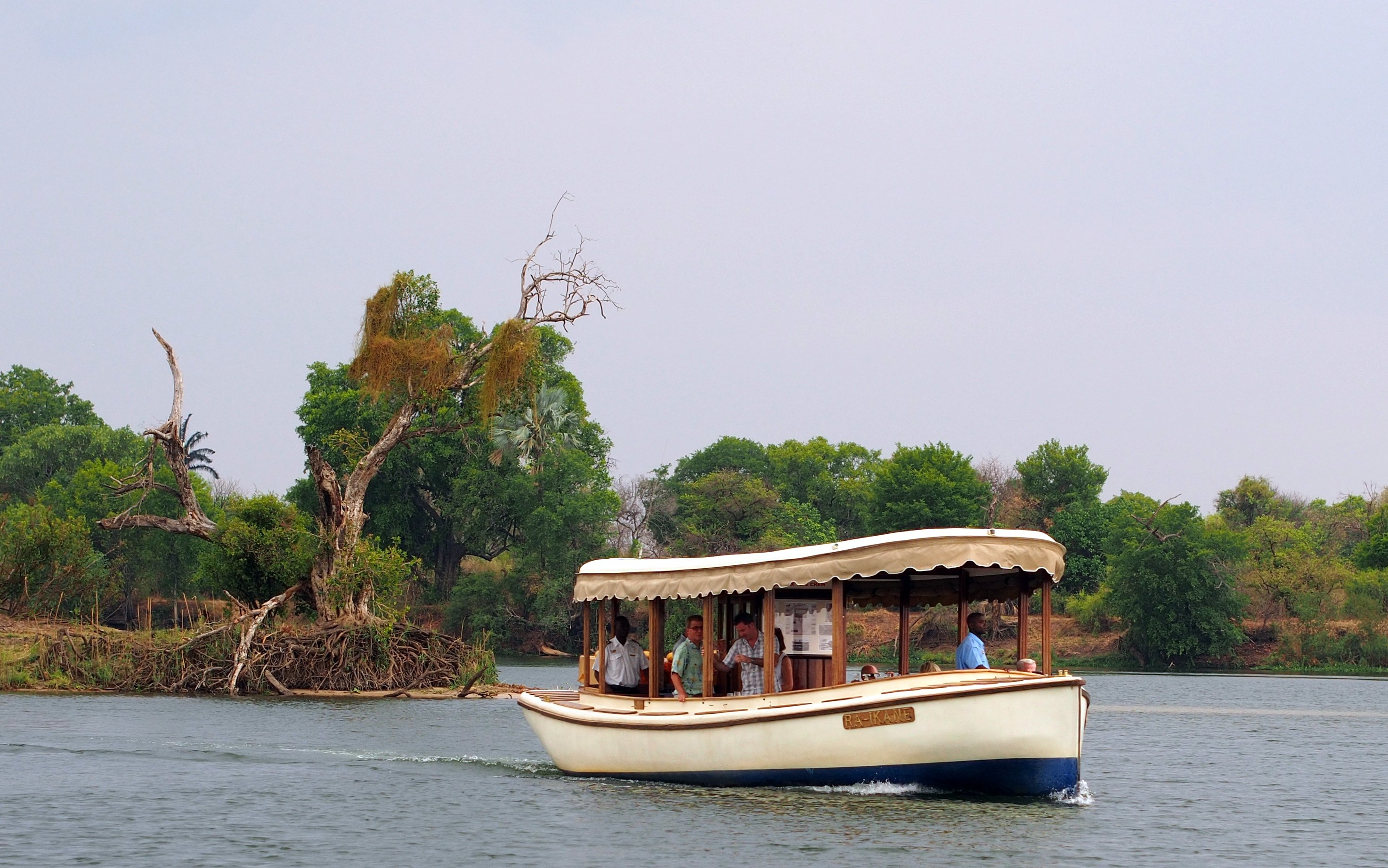 Wir landen in Vic Falls (der coole Kurzname der Stadt) gegen Mittag und haben dann das Vergnügen dem Einreisebeamten beim akkuraten Ausfüllen des Visum zuzuschauen. Das dauert lediglich 5 Minuten, für jeden Einreisenden! Wir waren schließlich nach knapp über 1,5 Stunden eingereist. Den Rest des Tages verbringt man dann mit einer Sambesi River Dinner Tour. Dafür gibt es reichlich verschiedene Bootstypen; wir haben uns für einen Nachbau der Ra-Ikane entschieden, das Boot mit dem damals schon Livingston die Gegend unsicher gemacht hat.