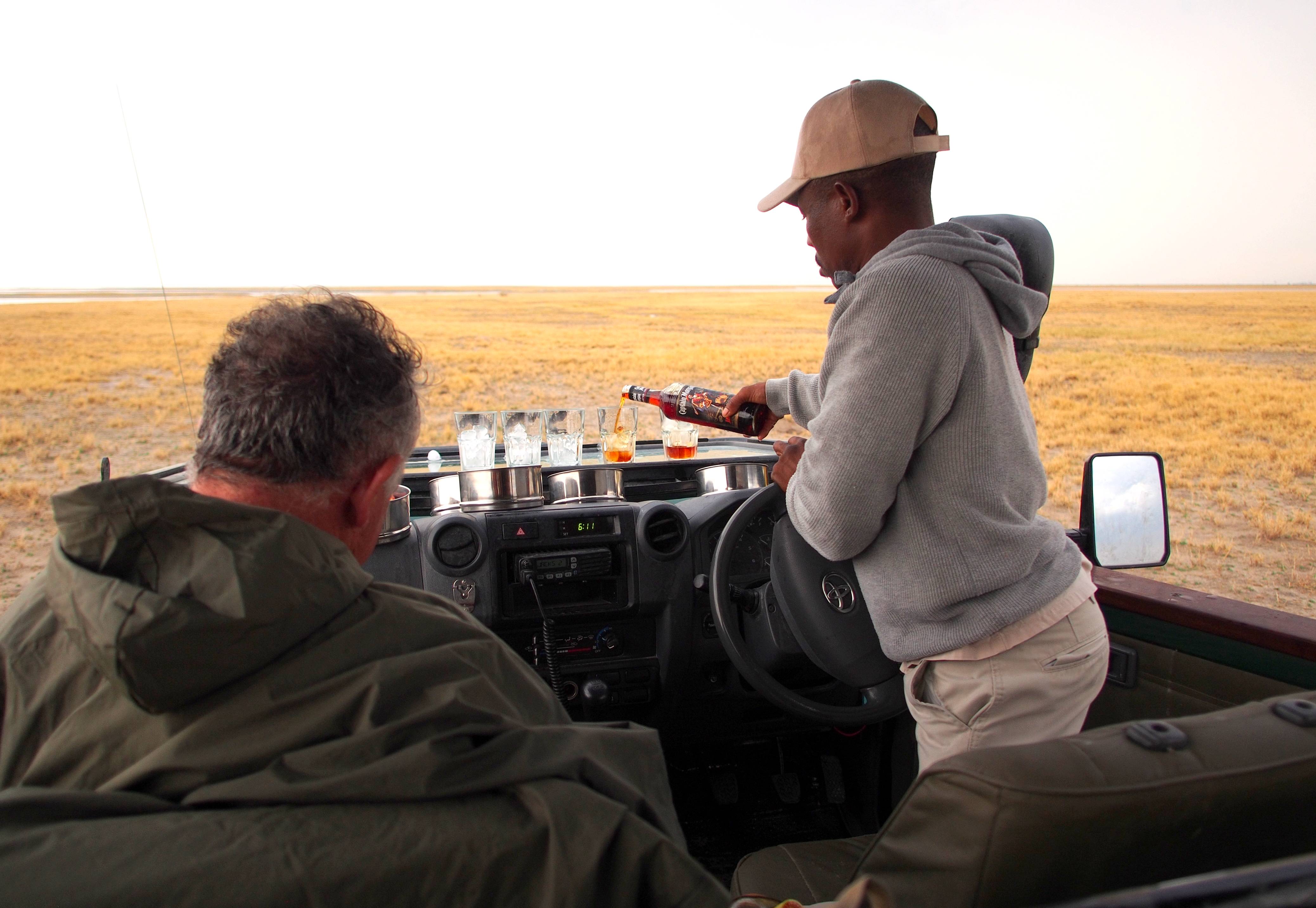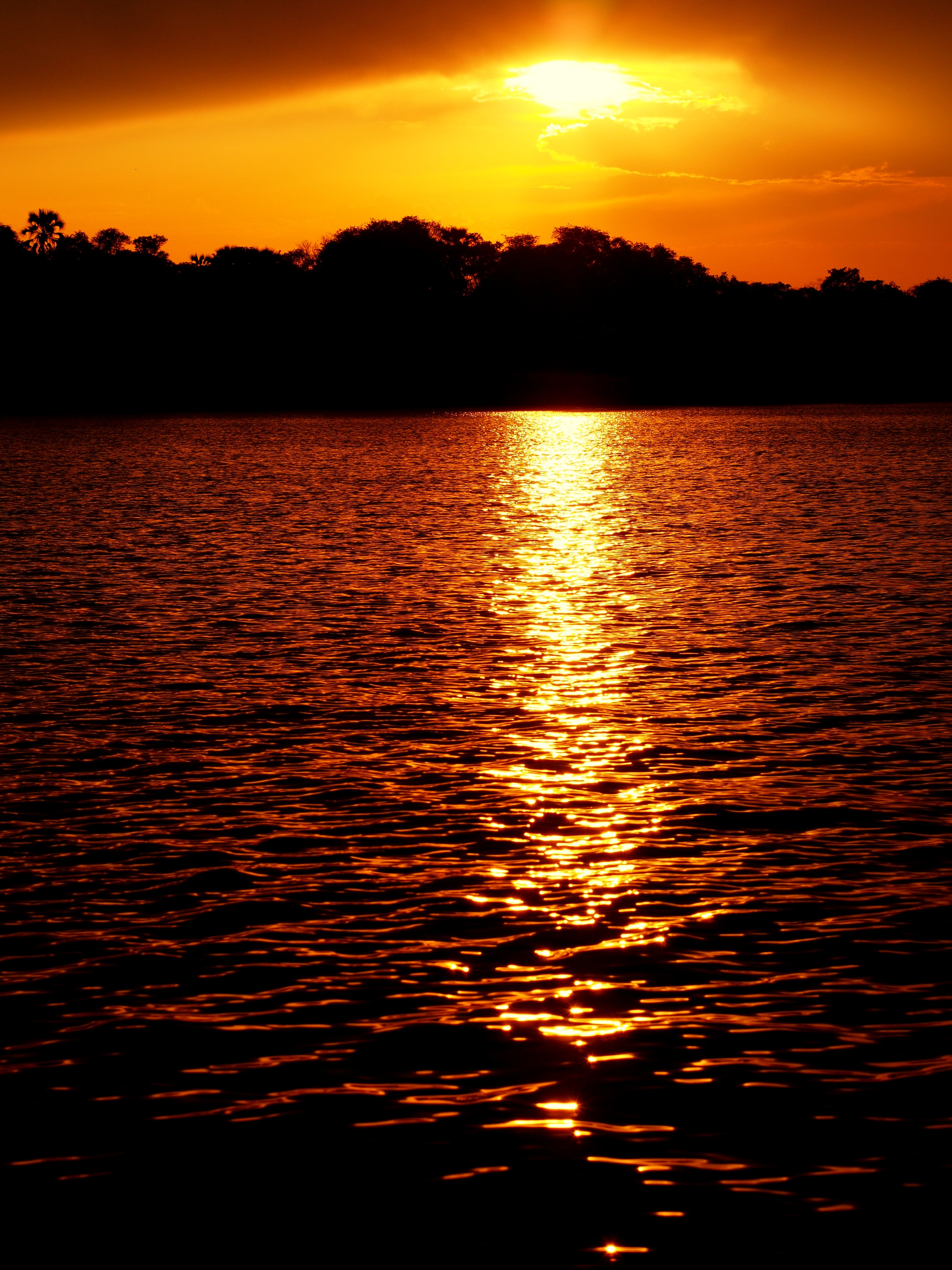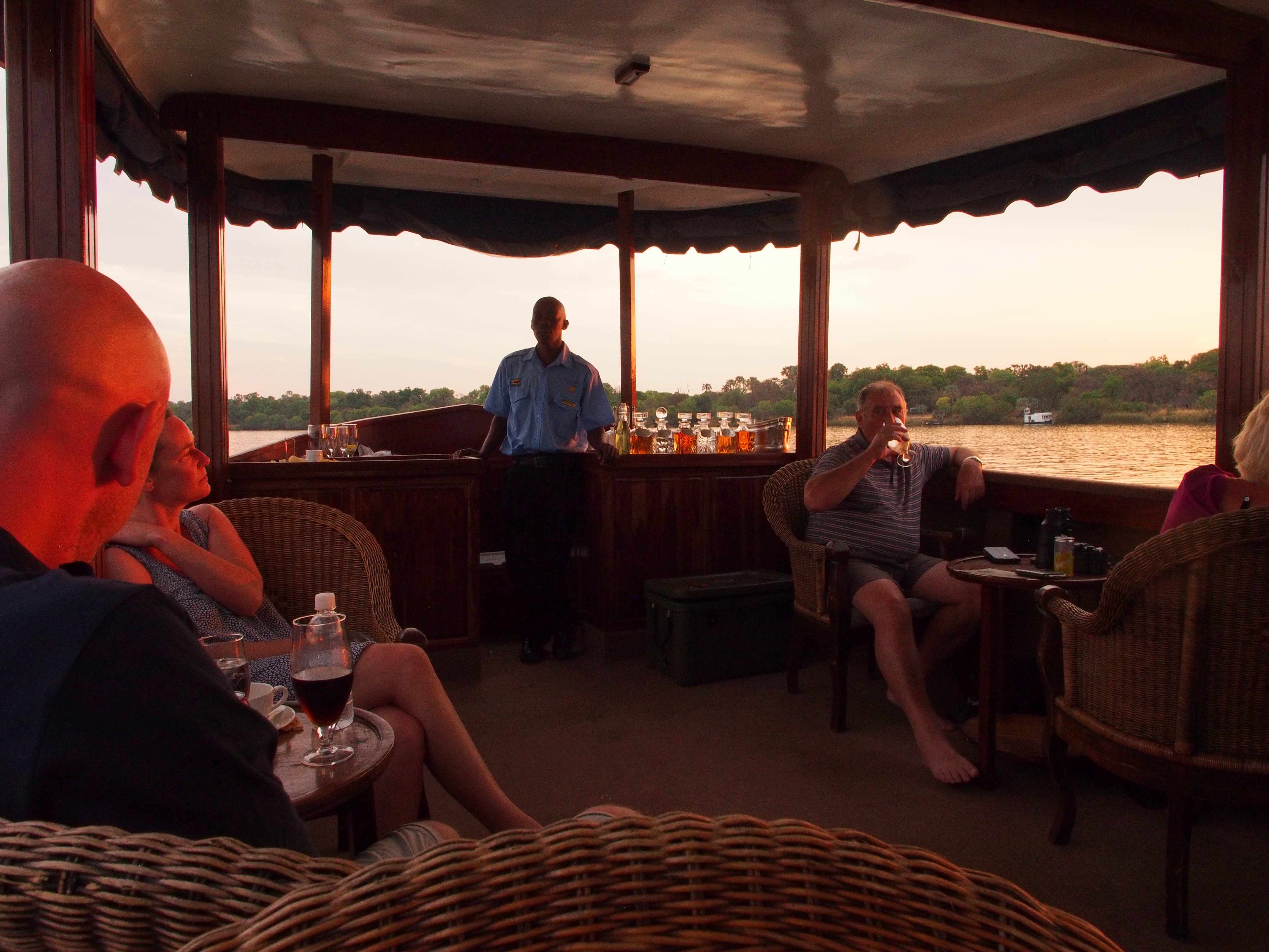 Nach gut einer Stunde Fahrt auf dem Sambesi, immer wieder Rotwein und einigen Tiersichtungen lehnt man sich nun relaxt zurück und schaut der Sonne bei ihrem täglichen Geschäft zu.